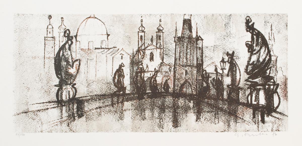 litografie, 1976, 11,9 x 27,9 cm, sign. PD A. Fuchs 76, č. 82/120, lehce zažloutlý papír, Aantiqari.at Radhošťská, , the disciple of Prof. V. Rada at The Academy of Fine Arts in Prague