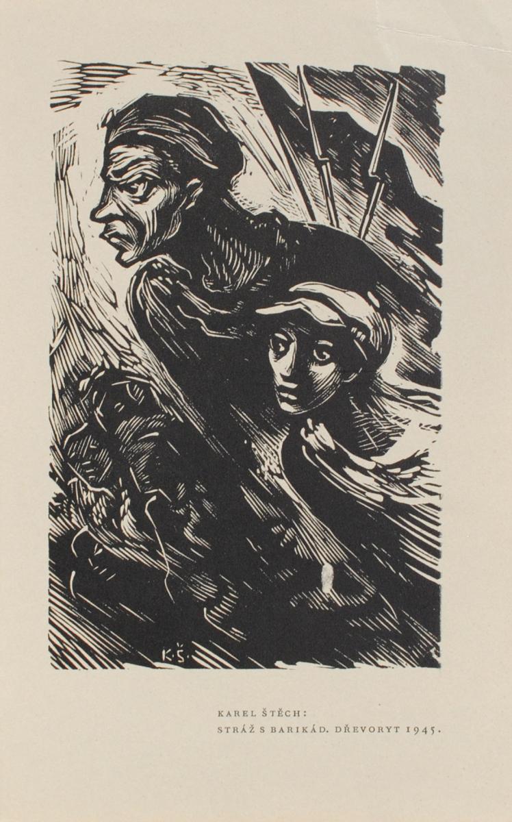 dřevoryt, 1945, 14,4 x 9,1 cm, značeno v desce DU K.Š.; pod grafikou PD Karel Štěch: Stráž barikád, dřevoryt 1945, pravý horní roh papíru pokrčen, Aantiqari.at Radhošťská, , studied Graphics at the atelier of prof. Z. Kratochvil at The Academy of Arts, Architecture and Design in Prague, the disciple…
