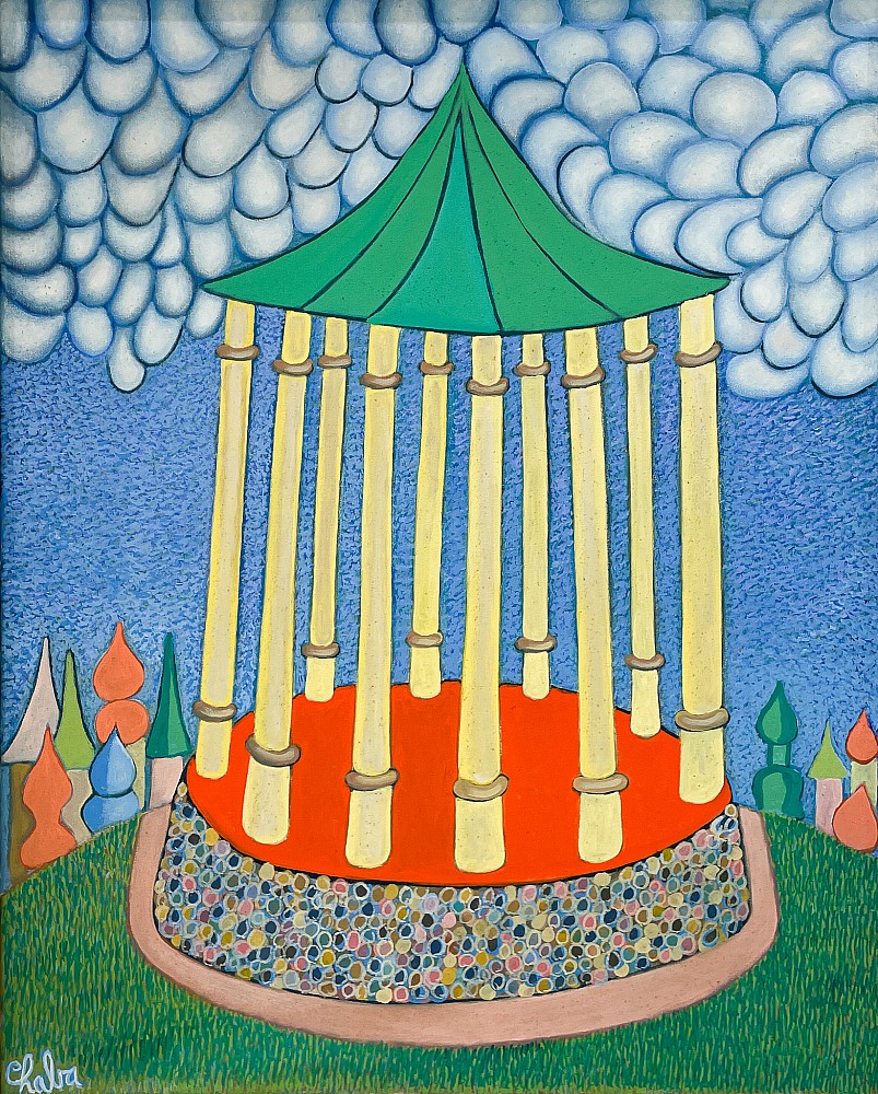 olej, plátno, 2004, 75 x 60 cm, sign. LD Chaba, rám, Karel Chaba byl český malíř-autodidakt, který se vzdělával soukromě a po celý život si zachoval tvůrčí nezávislost – nikdy se neřadil k žádnému výtvarnému spolku. Ve své tvorbě kladl důraz na intuici, osobní prožitek a svobodný výraz. Významné mí…