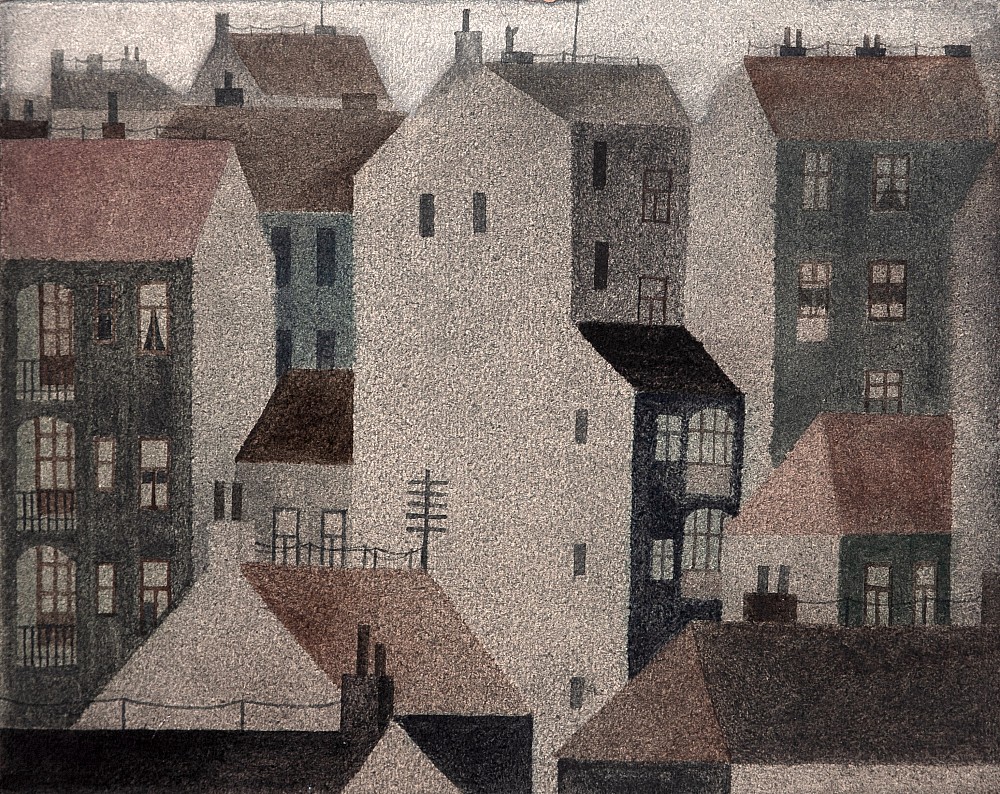 akvarel, papír, 1952 - 1953, 24 x 29,5 cm, signováno na zadní desce rámu, rám, vzadu autorsky popsáno, Vlastimil Beneš je často spojován s umělci Skupiny 42, s nimiž ho spojují generační i názorové souvislosti. Přesto jeho tvorbu charakterizuje spíše vyhraněná individualita těžko zařaditelná do obec…