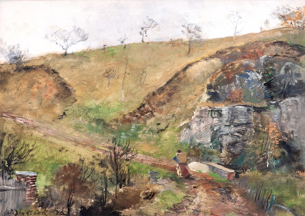 olejová tempera, papír, 1936, 29 x 40 cm, sign. LD O. Blažíček 36, rám, konzultováno a ověřeno PhDr. Michaelem Zachařem , studied at The Academy of Arts, Architecture and Design in Prague, the disciple of H. Schweiger at The Academy of Fine Arts in Prague, member of The Manes Association of Fine Ar…