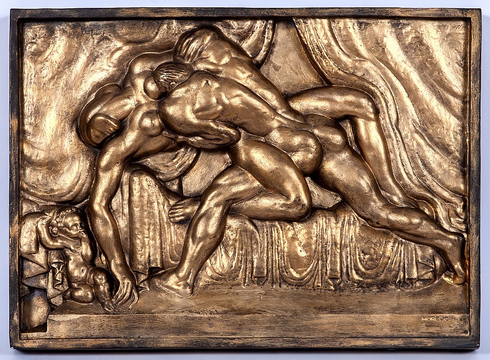 sádra se zlatou patinou, 1915, 33 x 45,5 cm, značeno PD Horejc, původní autorský odlitek, the disciple of prof. Sucharda, Novak and Drahonovsky at The Academy of Arts, Architecture and Design in Prague, member of The Manes Association of Fine Artists, The Union of the Czechoslovak Dilo