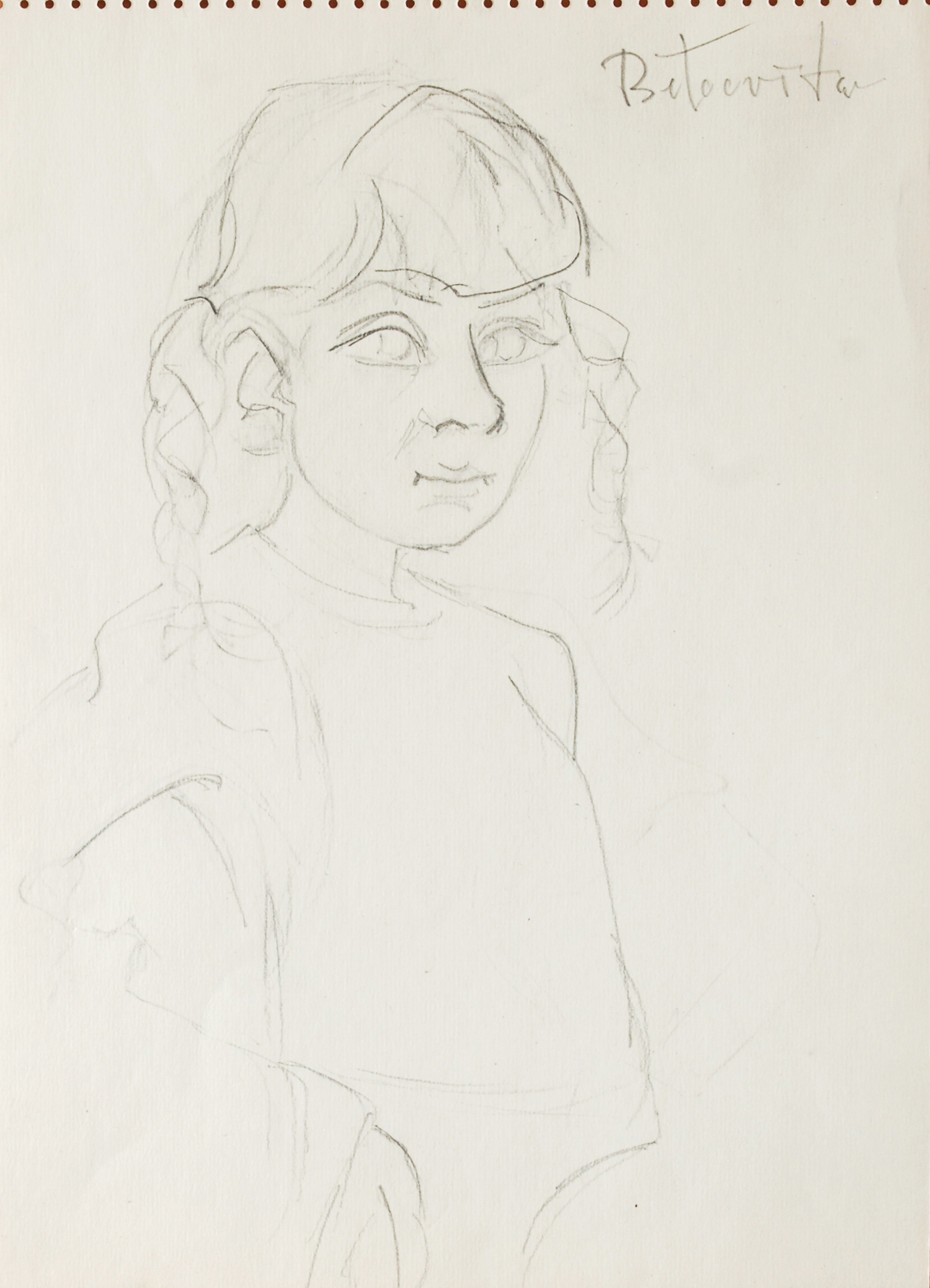 kresba , 1979, 15,7 x 9,9 cm, DU monogr.VF, studium na Akademii umění v Petrohradě, žák prof. M. Švabinského na AVU v Praze, člen Bloku čs. výtvarných umělců, člen a předseda SČUG Hollar