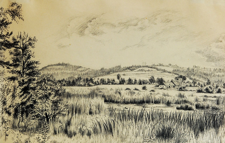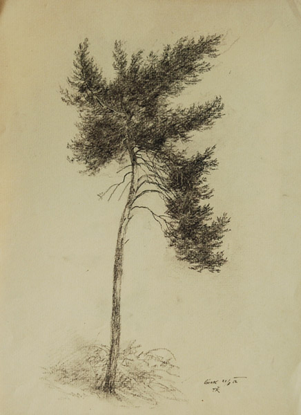 uhel, papír, 1956, 33,7 x 24 cm, monogramováno PD 21/8 56 JŘ, v dolní části posáno autorem, the disciple of prof. J. Koula, member of The Hollar Association of Czech Graphic Artists