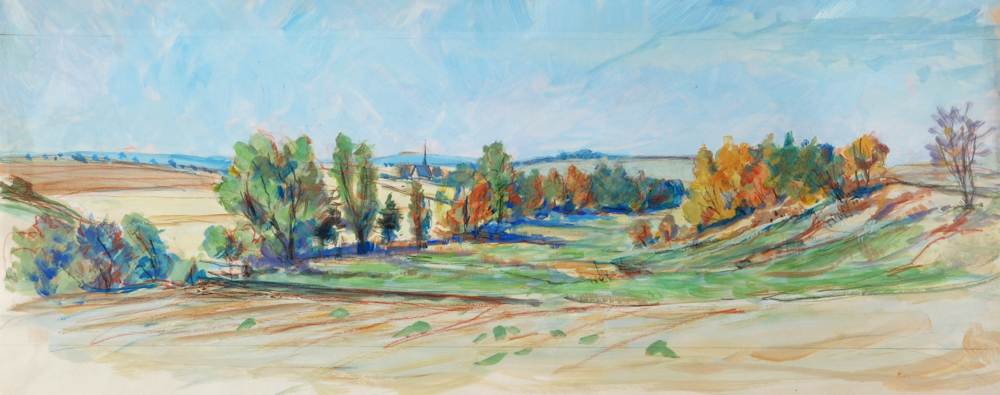 kvaš, karton, 1921, 28,6 x 39,2 cm, sign. PD J /G. Vlach 1920., malba zašlá, karton po okrajích otřepený, Aantiqari.at Radhošťská,