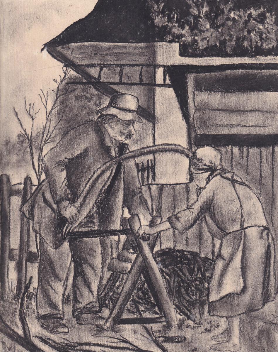 uhel, papír, 1946, 29,5 x 21 cm, monogramováno LD LT, Provenance: Antiquarian Dlážděná