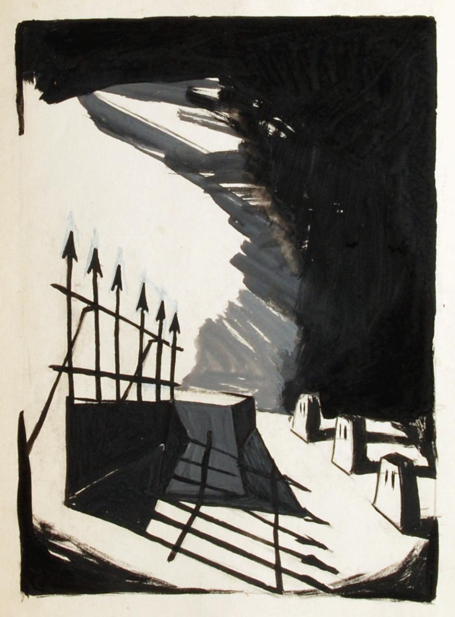 tuš, papír, 1984, 62,5 x 44 cm, sign. PD Josef Šolc 10/1984, Provenance: Antiquarian Dlážděná, disciple of Prof. J. Gočár at the Academy of Fine Arts in Prague