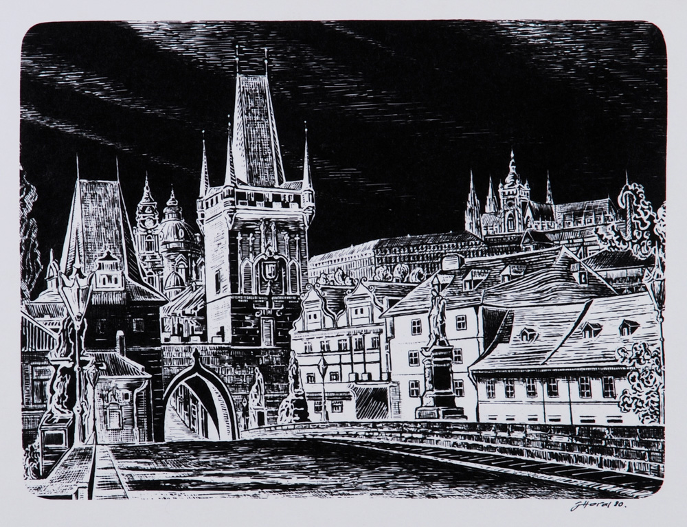 hlubotisk, 2003, 29,8 x 42,3 cm, sign. PD JHusták 03, autorský tisk, Antikvariát Ostrovní