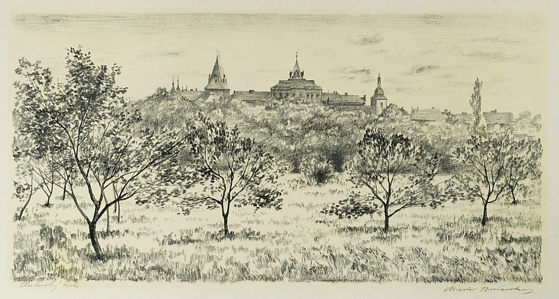 litografie, 23,9 x 47,6 cm, sign. PD Miroslav Brotánek, Antikvariát Dlážděná, žák prof. O. Nejedlého na AVU v Praze