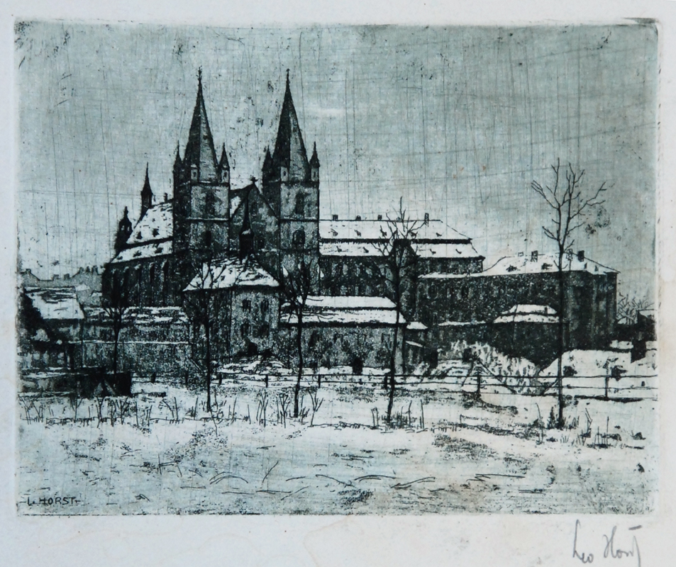 lept, 12 x 16 cm, sign. PD Leo Horst, vodní skvrna na papíře, Antikvariát Dlážděná