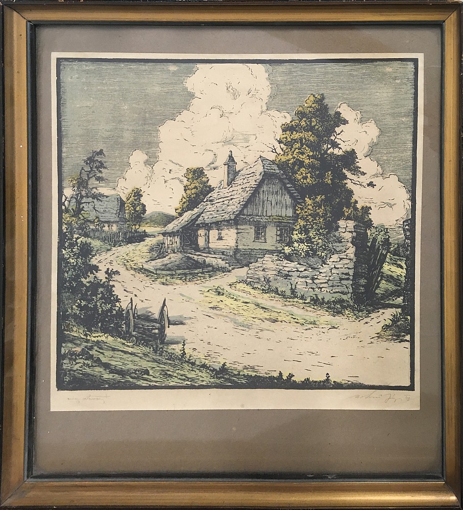 dřevoryt, 1943, 23 x 25, 5 cm, sign. PD Bohuš Jágr 43, rám