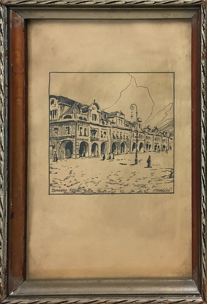 tuš, papír, 13 x 13 cm, sign. PD Matejíček, rám