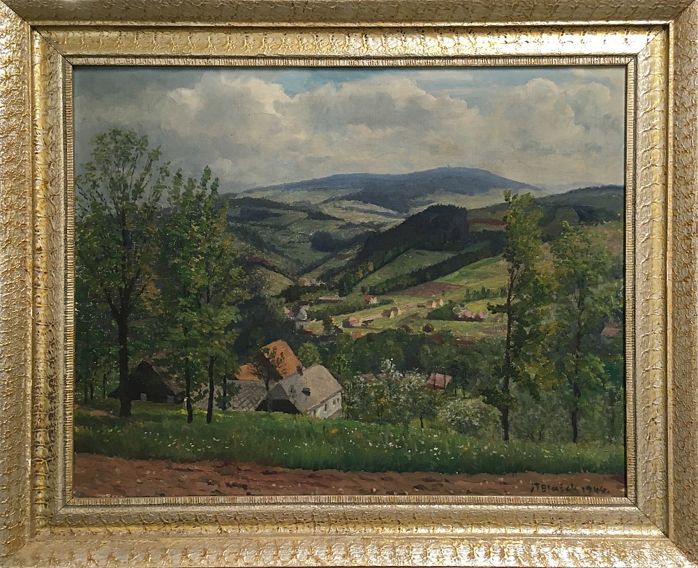 olej, plátno, 1944, 58 x 74 cm, sign. PD J. T. Blažek 1944, rám, the disciple of Prof. A. Hofbauer, J. Preisler and E. K. Liška