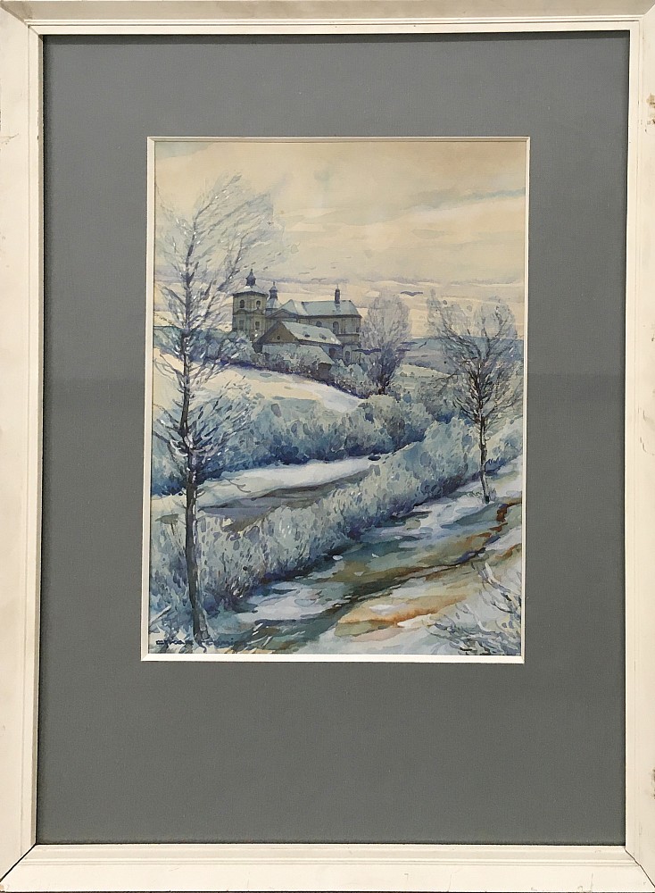 akvarel, pastel, papír, 27 x 30,5 cm, sign. PD Kuneš, rám
