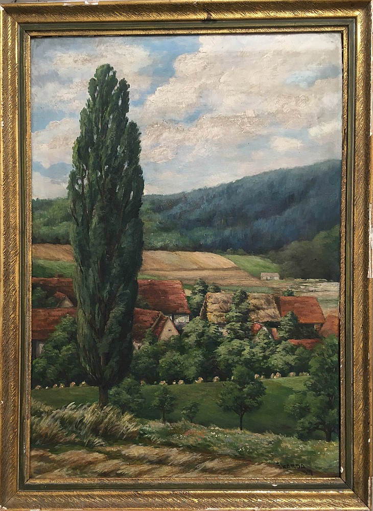 olej, plátno, 45 x 60 cm, sign. LD Sellner K. 1936, rám, plátno poškozeno a protrženo