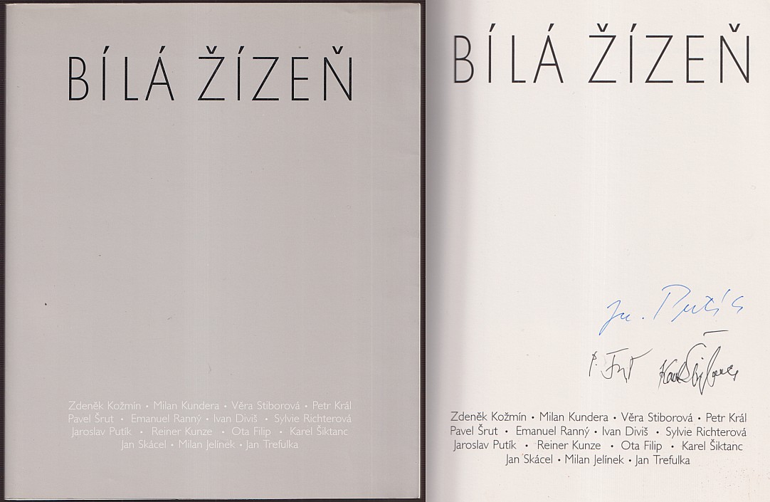 kniha, podpis na titulním listu Karel Šiktanc, Pavel Šrut a Jaroslav Putík, ilustrace a úprava Emanuel Ranný, sborník k poctě Janu Skácelovi, příspěvky a básně přispěli: Milan Kundera, Věra Stiborová, Petr Král, Pavel Šrut, Ivan Diviš, Sylvie Rychterová, Jaroslav Putík, Reiner Kunze, Ota Filip, Kare…