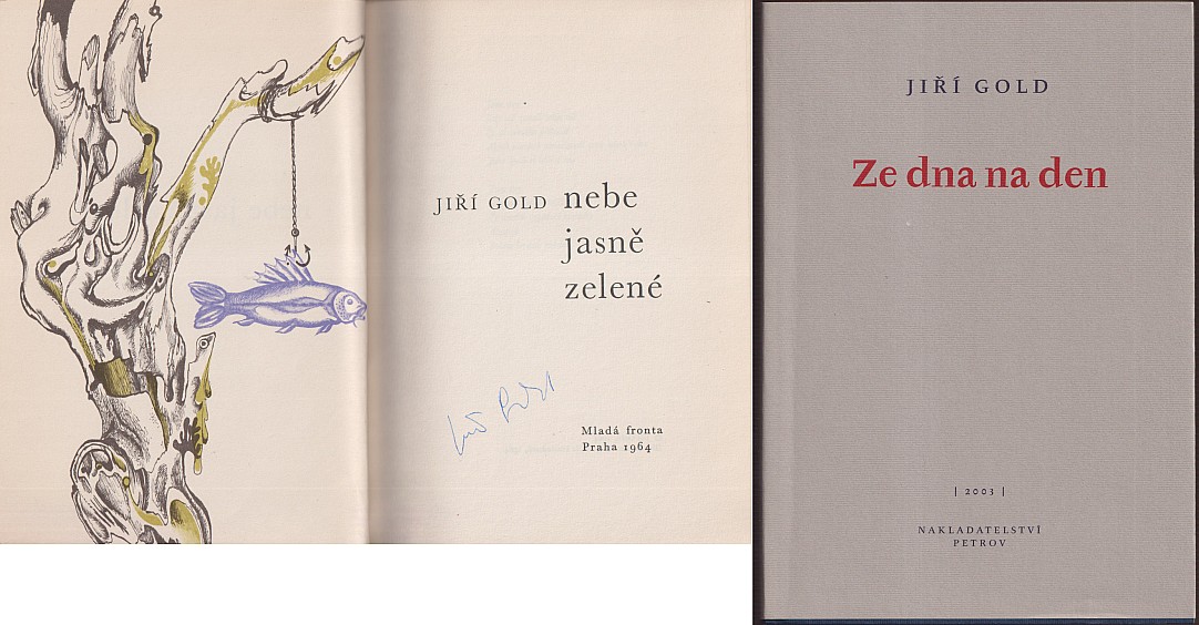 kniha, autorova básnická prvotina Nebe jasně zelené, podpis na titulu Jiří Gold, ilustrace, obálka a úprava Jarmila Halámková, 17. sv. edice Mladé cesty, vydala Mladá fronta, Praha 1964, pův. brož s obálkou, 68s., okraje obálky zašlé, velmi dobrý stav, podpis na patitulu a ilustrace Jiří Gold, náv…