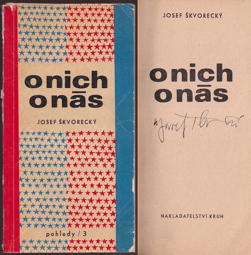 brož, podpisy manželů Škvoreckých pod fotografiemi uprostřed sešitu, knihy vydané nakladatelství 68-Publishers, vydal Památník národního písemnictví, Praha 1990, 2000 výtisků, nestr. brož, velmi dobrý stav, Provenance: Antiquarian Ostrovní