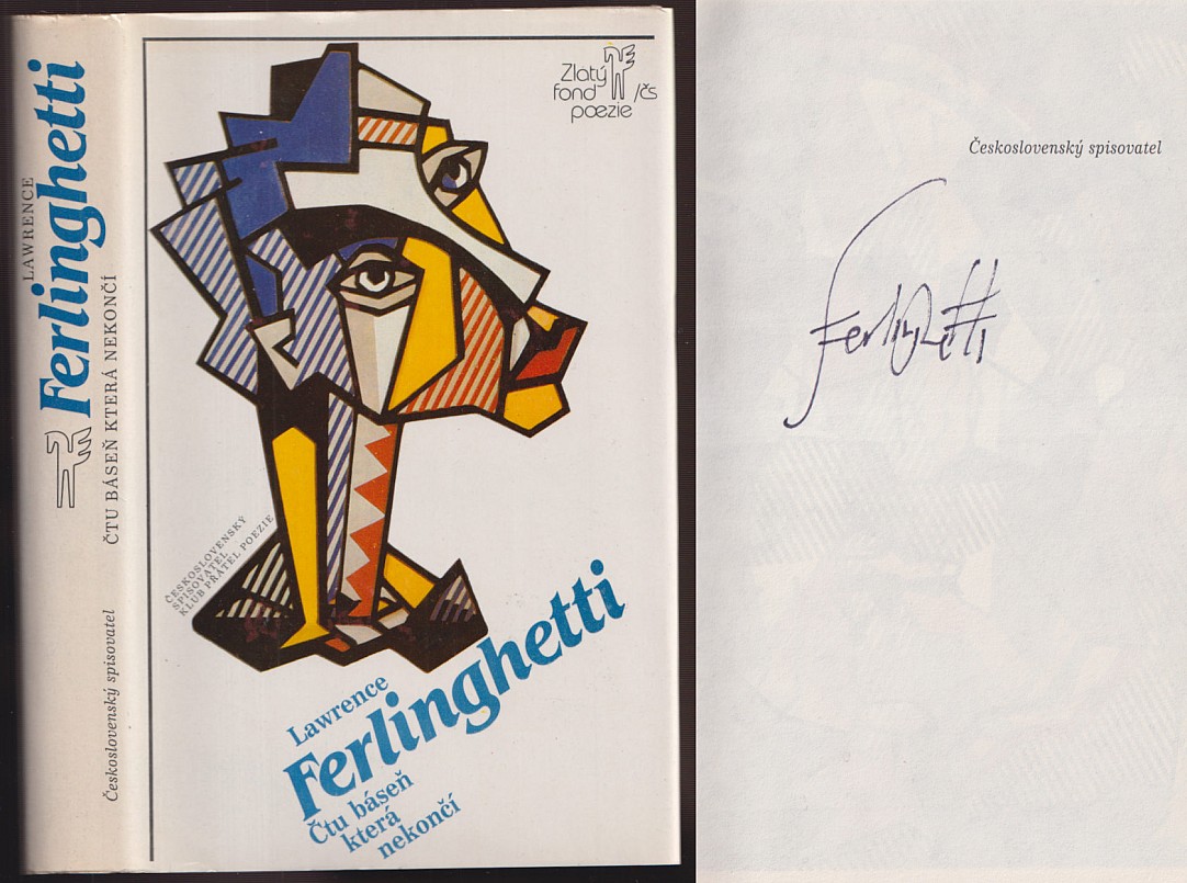 kniha, podpis na vakátu L. Ferlinghetti, básně vybral, přeložil, faktografické pásmo a doslov sepsal Jan Zábrana, ilustrace Roy Lichtenstein, úprava O. Hlavsa, ed. Zlatý fond poesie, vydal Československý spisovatel, Praha 1984, clpl. vazba s ob., 280 s., velmi dobrý stav, Provenance: Antiquarian Ost…