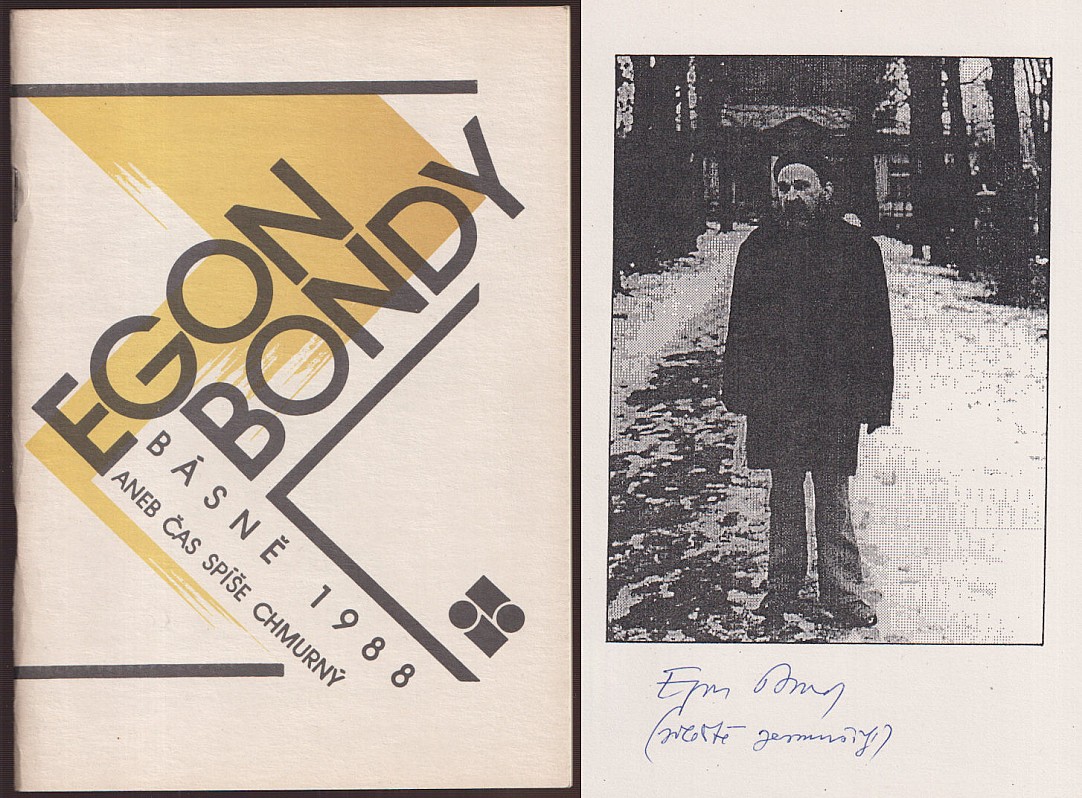 kniha, podpis za titulem Egon Bondy, předmluva Tomáš Mazal, 4. sv. edice Inverze, vydala Inverze, Praha 1990, sešit, 32 s., velmi dobrý stav, Provenance: Antiquarian Ostrovní
