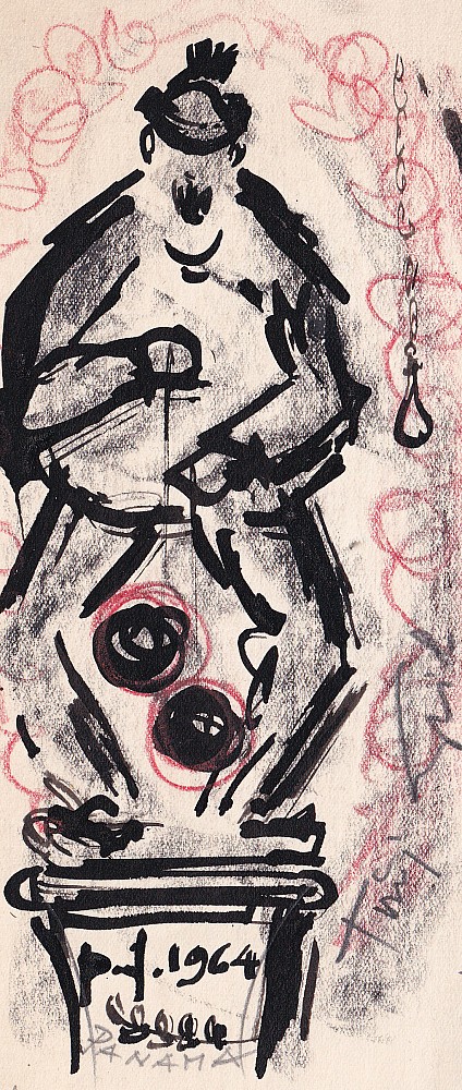 tuš, pastel, papír, 1966, 21,7 x 10,7 cm, PF 1964, PD věnování Tvůj Cyril, Provenance: Antiquarian Dlážděná