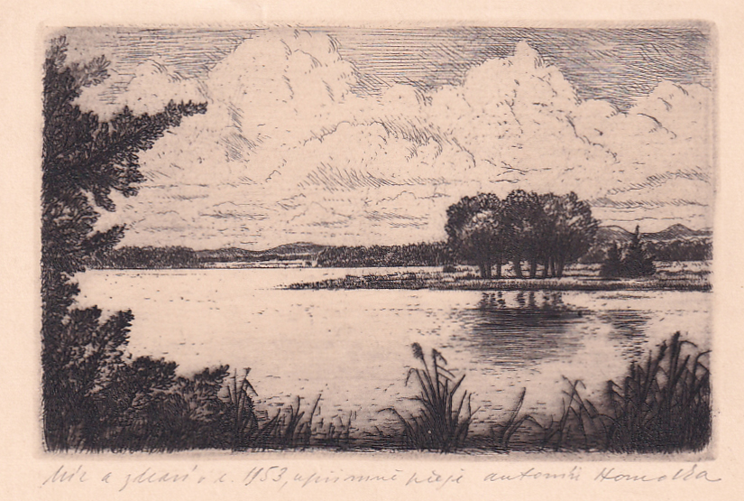 lept, 8,3 x 13,1 cm, sign. DU A. Homolka, PF 1961, papír lehce zažloutlý, Aantiqari.at Radhošťská, , the disciple of prof. Benda at The Secondary School of Applied Arts in Prague, prof. W. Nowak and T. F. Simon at The Academy of Fine Arts in Prague, member of The Hollar Association of Czech Graphic …