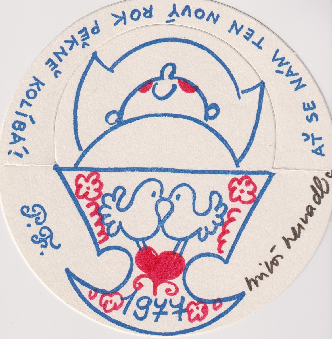 tisk, 1977, 6,7 x 32 cm, sign. DU Miloš Nesvadba, přehnuto 4 x , Aantiqari.at Radhošťská,