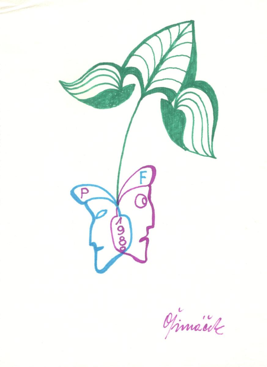 fixa, 1979, 21,2 x 15,4 cm, sign. PD Šimáček, horní růžky papíru ohnuté, Aantiqari.at Radhošťská,