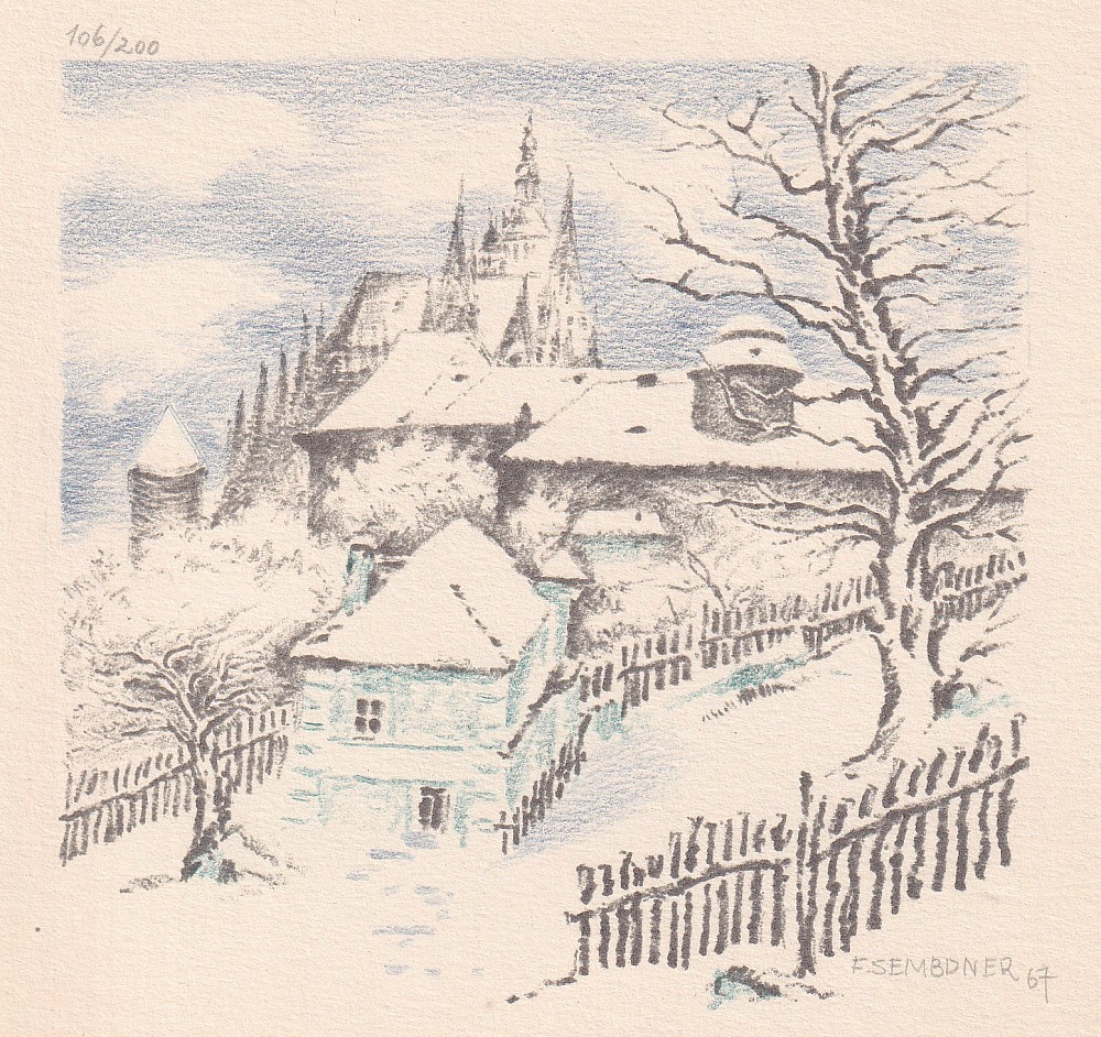 litografie, 1967, 11 x 11,5 cm, sign. PD F. Sembdener, č. 106/200, Provenance: Antiquarian Dlážděná