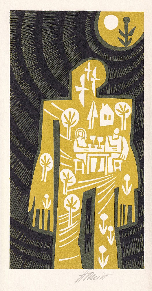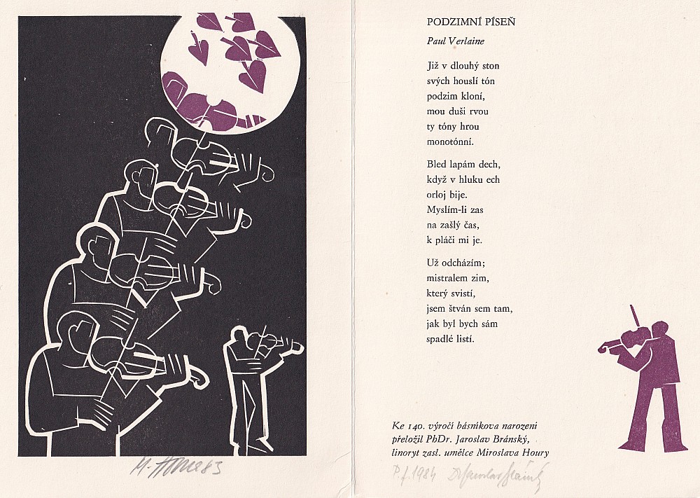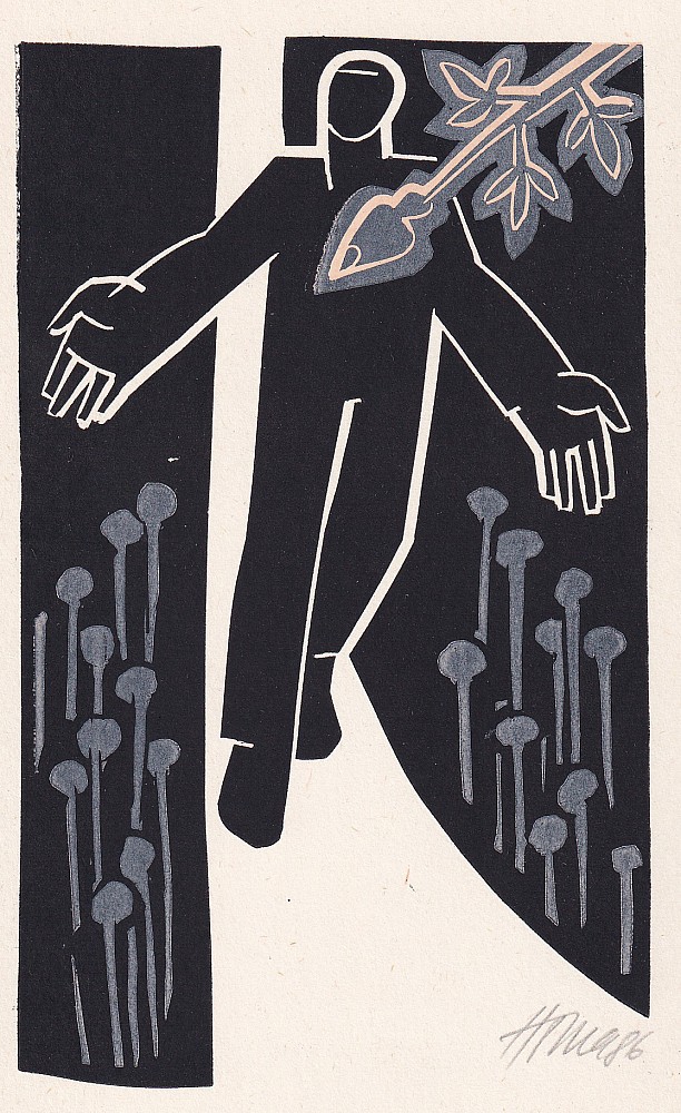 linoryt, 1986, 14,5 x 8,7 cm, sign. PD M. Houra 86, PF 1986, Provenance: Antiquarian Dlážděná, studied at The Academy of Arts, Architecture and Design in Prague, the disciple of C. Bouda, K. Lidicky and M. Salcman at The Faculty of Education - Charles University in Prague, member of The Hollar Assoc…
