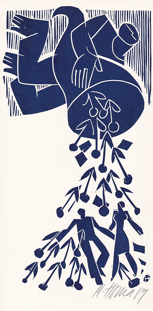 linoryt, 1984, 17 x 9,5 cm, sign. DU M. Houra 84, PF 1985, Provenance: Antiquarian Dlážděná, studied at The Academy of Arts, Architecture and Design in Prague, the disciple of C. Bouda, K. Lidicky and M. Salcman at The Faculty of Education - Charles University in Prague, member of The Hollar Associa…