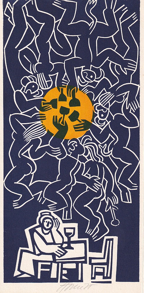 linoryt, 1988, 19,3 x 9 cm, sign. PD Houra 88, PF 1989, Provenance: Antiquarian Dlážděná, studied at The Academy of Arts, Architecture and Design in Prague, the disciple of C. Bouda, K. Lidicky and M. Salcman at The Faculty of Education - Charles University in Prague, member of The Hollar Associatio…