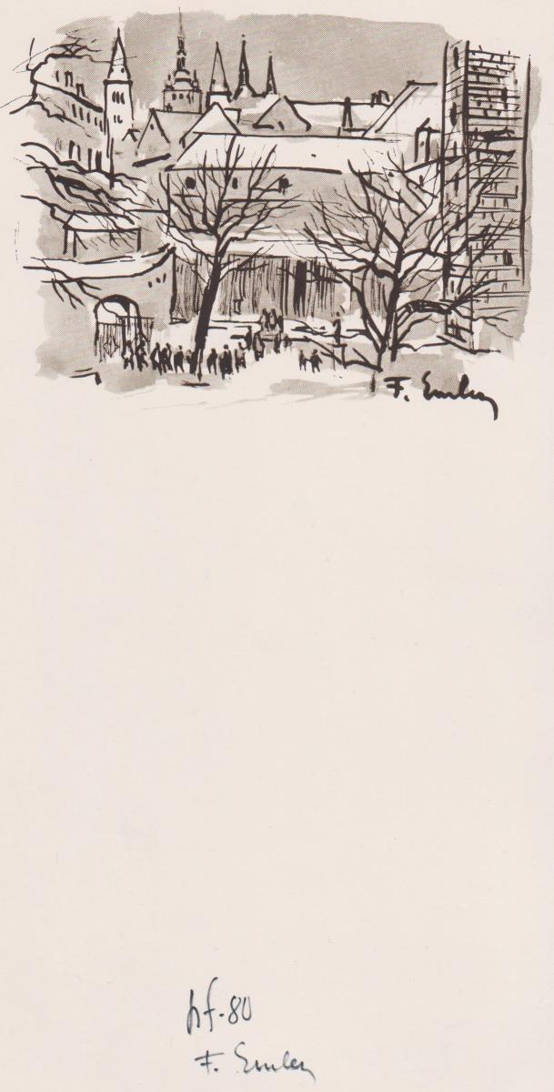 tisk, 1979, 7,5 x 9,5 cm, sign. DU F. Emler, Aantiqari.at Radhošťská, , the disciple of prof. O. Nejedly and V. Pukl at The Academy of Fine Arts in Prague