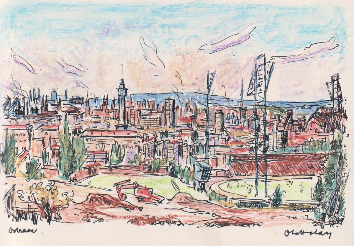 křída, propiska, papír, 1982, 13 x 20,5 cm, sign. PD Ota Holas, Aantiqari.at Radhošťská, , the disciple of prof. Obrovsky and K. Minar at The Academy of Fine Arts in Prague, member of The Moravian-Silesian Association of Fine Artists, The Association of Silesian Fine Artists in Opava, SCSVU, SCVU