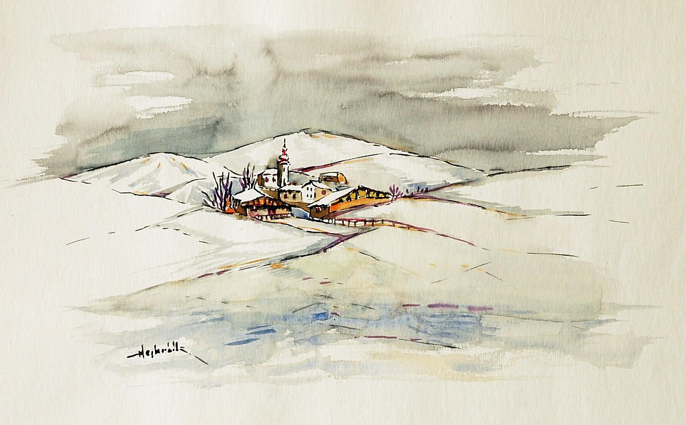 akvarel, papír, 30 x 44,2 cm, sign. LD Hejkrlík, Antikvariát Dlážděná