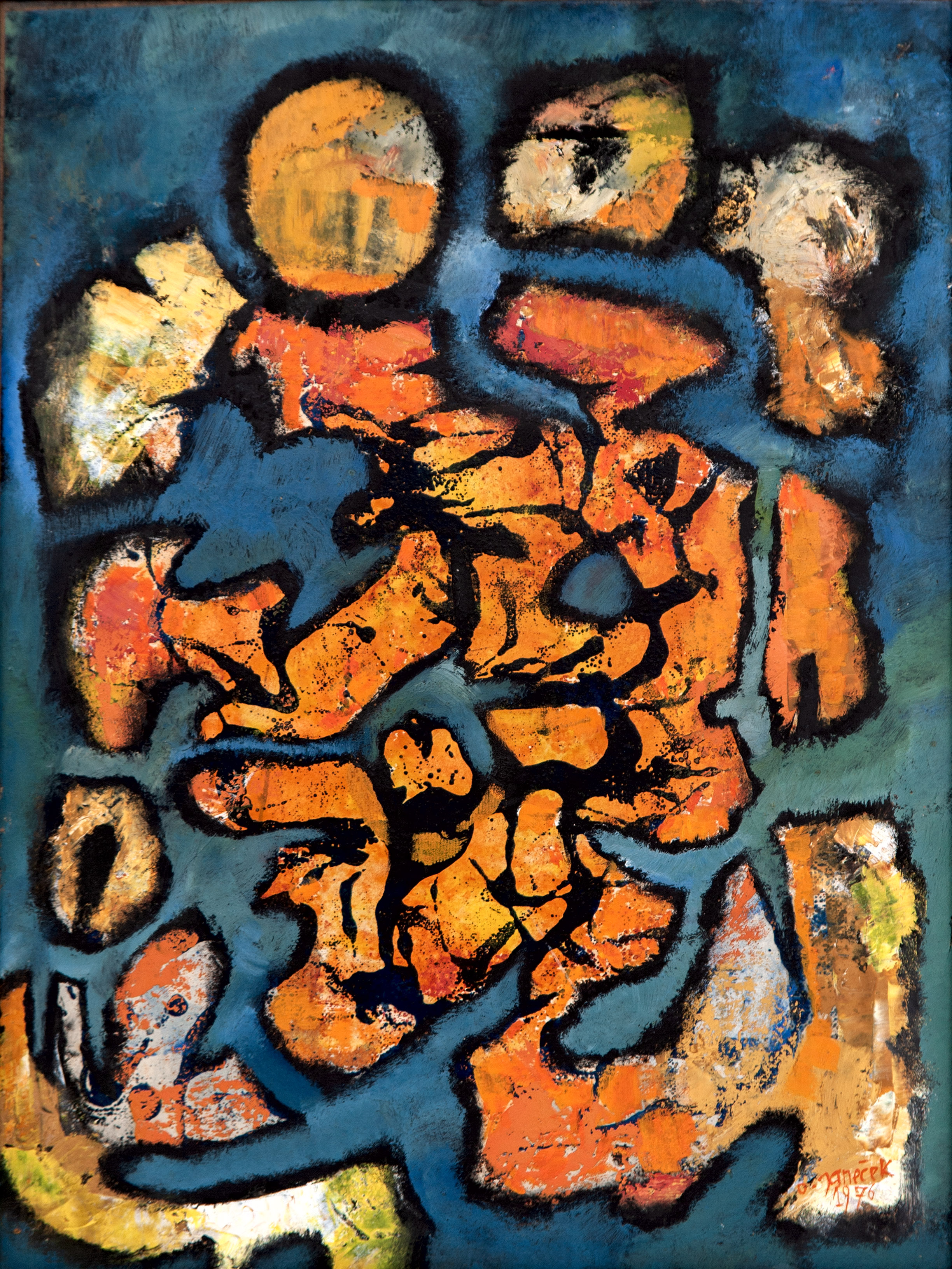 akryl, kombinovaná technika, sololit, dřevo, 1995, 46 x 33 cm, sign. LU 95 Boris Jirků, autorský rám, Boris Jirků patří k výrazným osobnostem českého poválečného a současného výtvarného umění, přičemž jeho tvorba organicky propojuje malbu, kresbu, sochu, ilustraci i pedagogickou činnost. Jeho výtvar…