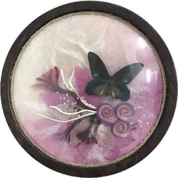 koláž, tapiserie, 25 x 25 cm, rám