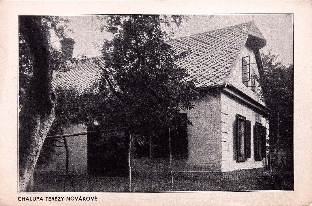 pohlednice, 9,8 x 15 cm, dopisnice Pozdrav z Proseče s motivem chalupy Terézy Novákové, podepsáni Arne Novák (profesor české literatury, literární kritik a historik, esejista, redaktor) a Jiřina Nováková, Provenance: Antiquarian Dlážděná