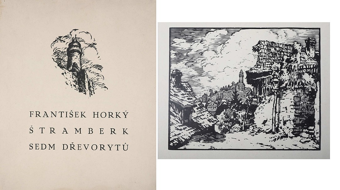 bibliofilie, 7 dřevorytů na japanu Fr. Horký, doprovodný text J. R. Marek, vydal autor vlastním nákladem, 1921, volné listy v deskách, lehce pokrčený papír , Provenance: Antiquarian Ostrovní