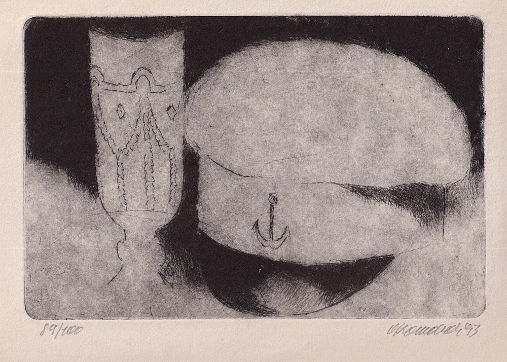 suchá jehla, 1993, 15 x 22,6 cm, sign. PD VKomárek 93, č. 89/100, Antikvariát Ostrovní, žák prof. K. Mináře na AVU v Praze a K. Štipla na VŠUP v Praze, člen SČUG Hollar a SČVU