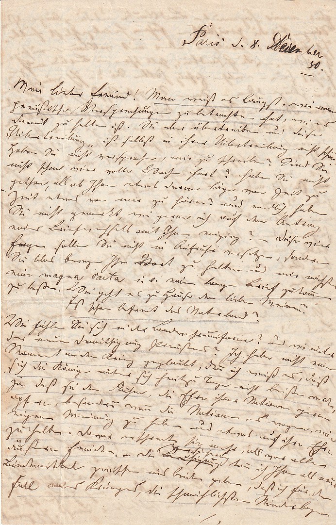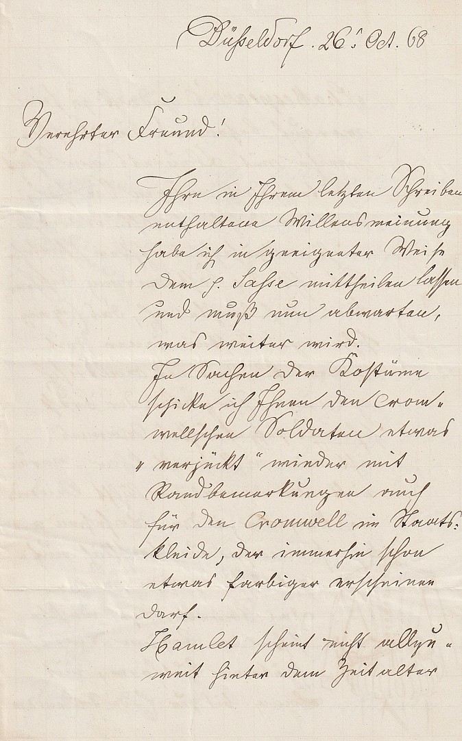 rukopis, tuš, 21 x 13,5 cm, ručně psaný a signovaný dopis, 3x drobná kresba v textu, r. 1868, tři popsané strany, volný dvojlist, dobrý stav, Antikvariát Dlážděná