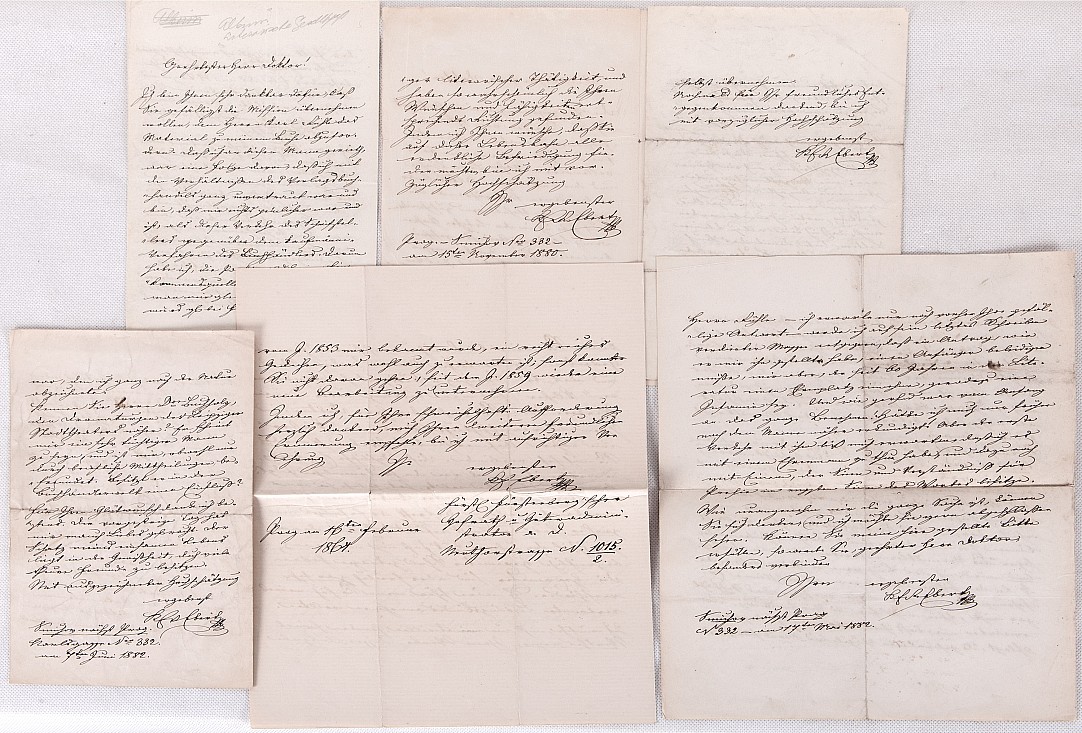 rukopis, 23 x 14 cm, 6x ručně psaný a podepsaný dopis, r. 1882, volné dvojlisty, dobrý stav, Antikvariát Dlážděná