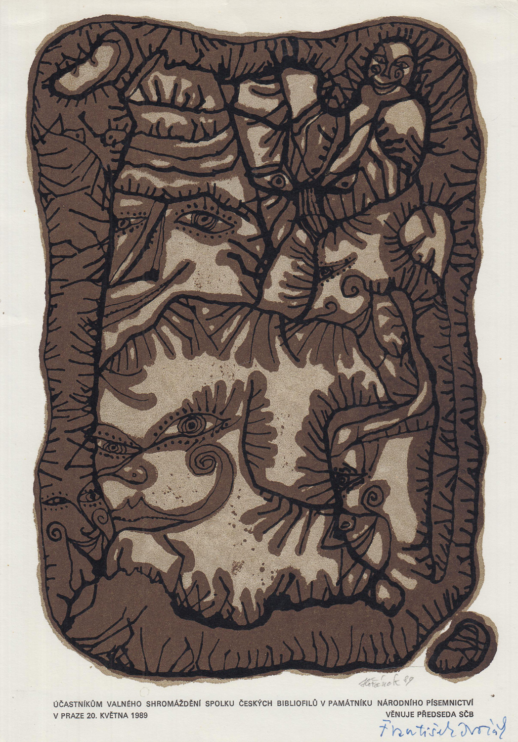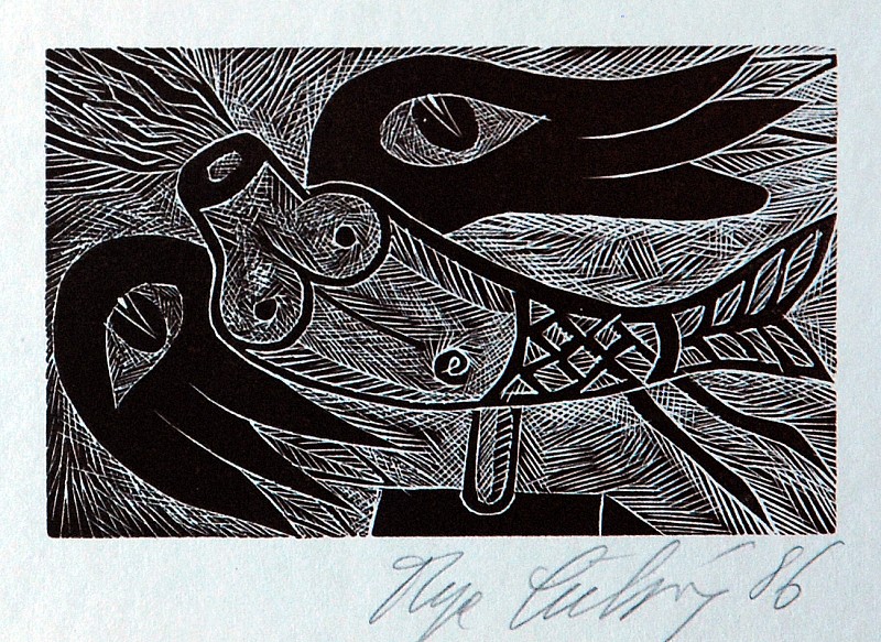 woodcut, 1986, 5 x 8 cm, signed RD Olga Čechová 86, p. f. 1987, Provenance: Antiquarian Dlážděná, the disciple of prof. Rossman and Dillinger at The School of Artistic Crafts in Brno, prof. K. Svolinsky and A. Strnadel at The Academy of Arts, Architecture and Design in Prague, member of the group Tr…