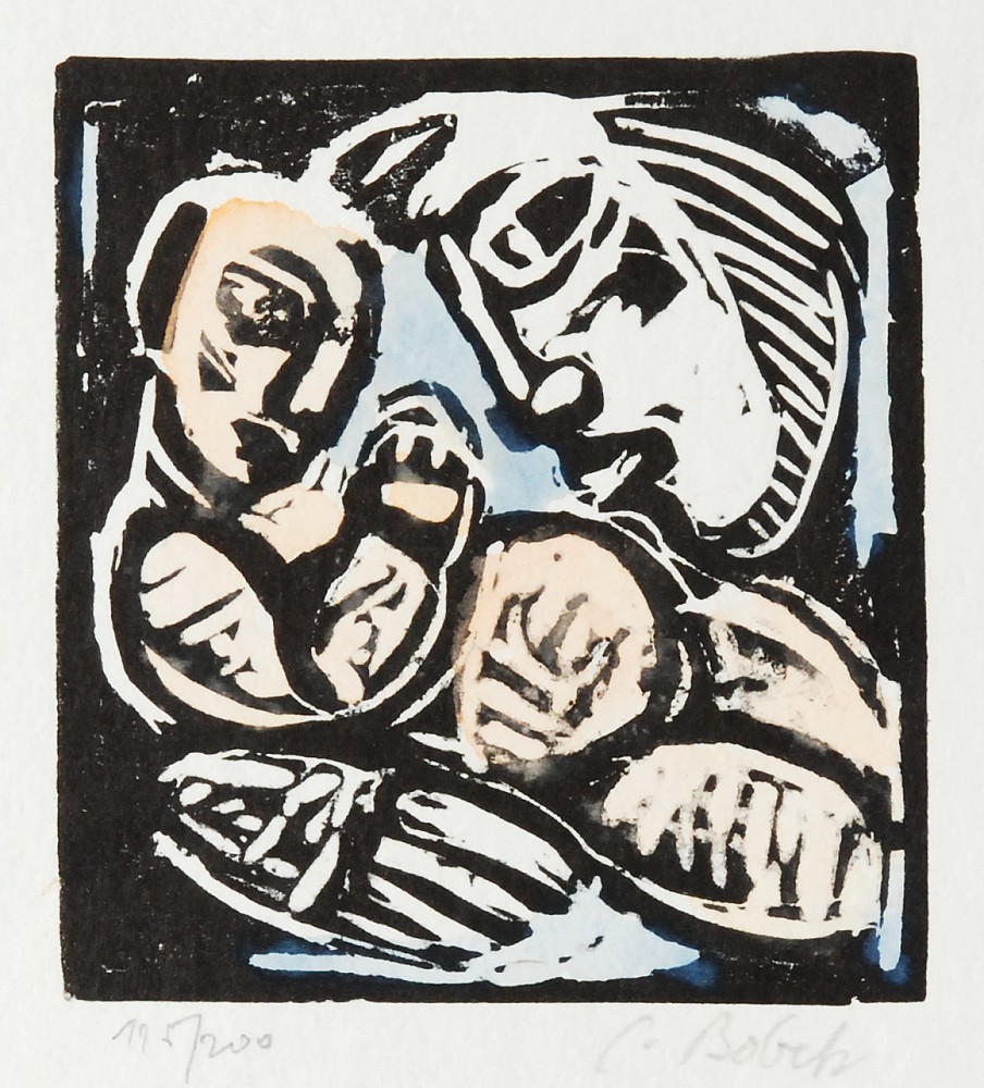 dřevoryt, akvarel, 9,1 x 8,4 cm, sign. PD J. Bobek, 125/200, vydala Lyra Pragensis, Provenance: Antiquarian Dlážděná, the disciple of prof. J. Bauch at The Academy of Arts, Architecture and Design in Prague, member of the group INDEX