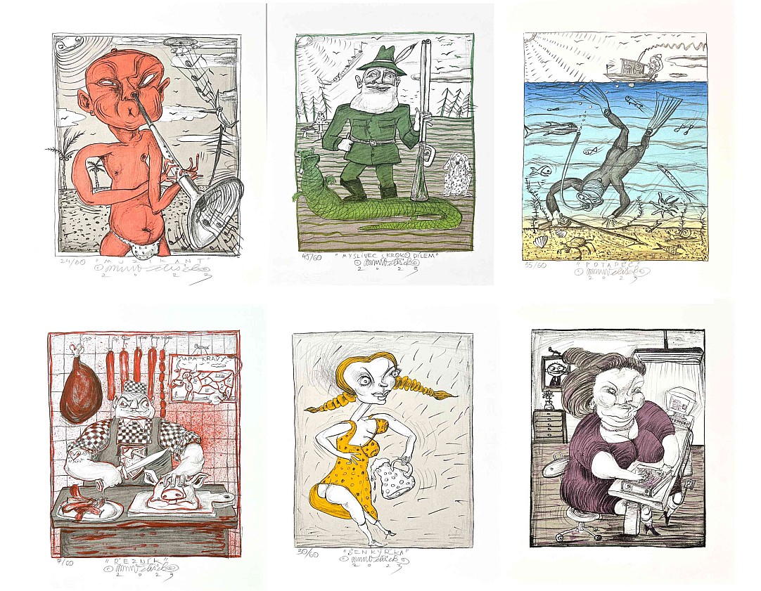 6 barevných litografií , 2023, 38 x 31 cm, sign. DU MVelíšek, č. 53/60, součástí alba jsou pevné desky a textová čast