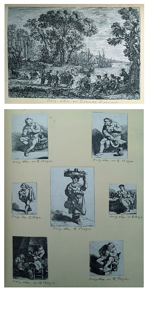 kniha, 200x lept, 37,5 x 27 cm, vytiskl W. Lewis, 21 Finch-Lane, Cornhill; autoři Rembrandt, Vivares, Claude, Horizonti, Hollar, Theodore van Kessel, Runciman, Cornelius Bega, Castiliogne, Silvestre a další