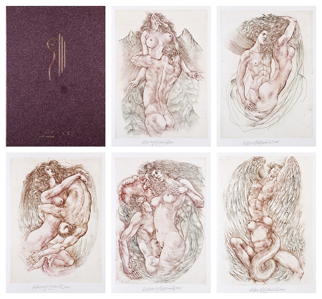 bibliofilie s 5 původními lepty, 2011, 33 x 24, 2 cm, vše sign. DU Oldřich Kulhánek 2011, č. 78/80, vydala Daruma Praha 2011, autorem básní je Christos Giannakos (text v řečtině a v angličtině). Cyklus Metamorfózy (česky), ilustrace k řeckým básním The Fall. Příběh pojednává o nekonečných proměnách …