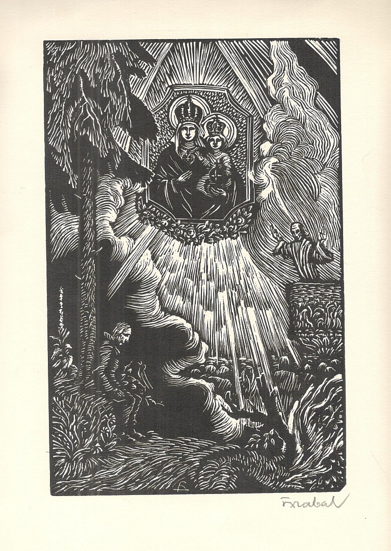 bibliofilie, 35 černobílých dřevorytů Josef Váchal, úprava Oldřich Menhart, vydání řídil Jan Blahoslav Čapek, 7. sv. edice Ráj knihomilů, vydal ELK, Praha 1946, volné listy v deskách, 64s., similijapan, ex. 873/1001, suchá pečeť, velmi dobrý stav, Provenance: Antiquarian Ostrovní, the disciple of A.…