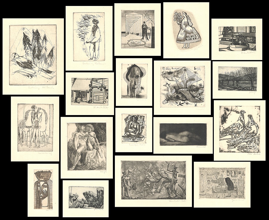 bibliofilie, 20x sign. grafický list maďarských autorů: 2x Csohány Kálman, Reich Károly, 2x Raszler Károly, 2x Molnár István, Gacs Gábor, Kondor Béla, Jurida Károly, Gross Arnold, Nagy Zoltán, Kontantin Lázsló, Szuts János, Varga Nándor Lajos, Rozanits Tibor, Csurgói Máté Lajos, Fery Antal, Bálványo…