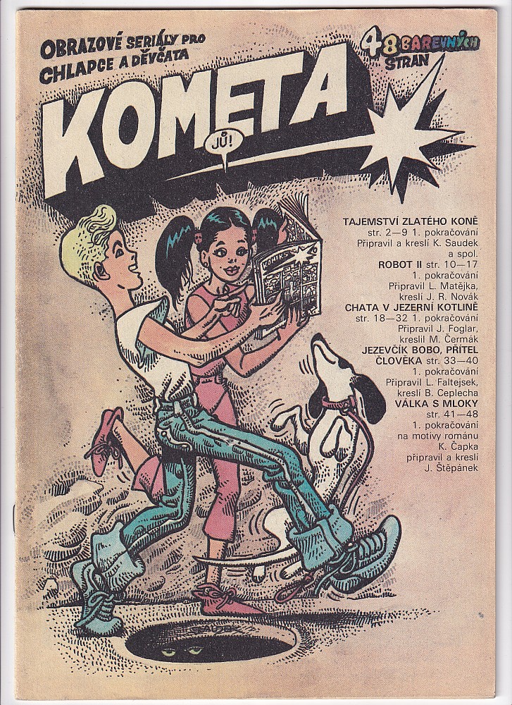 sešit, 5. pokračování komiksu Ztracený kamarád (Jaroslav Foglar) K. Saudek, vyd. Comet a Svépomoc, Praha, 1990, sešit, 48s., oslí růžky, nepatrně odřený hřbet, jinak pěkný stav, Aantiqari.at Radhošťská,